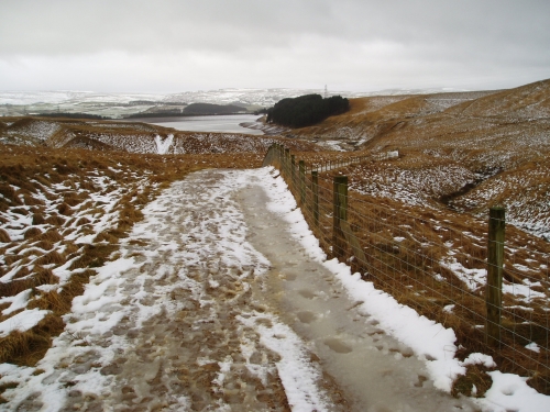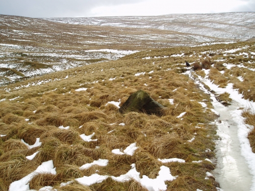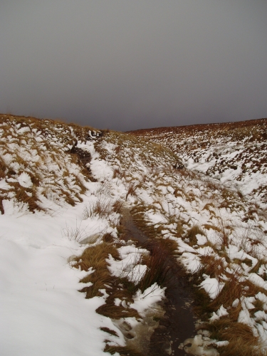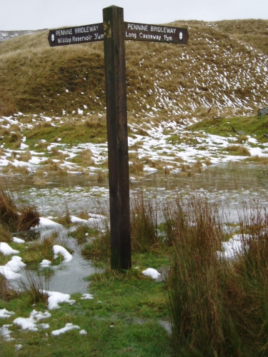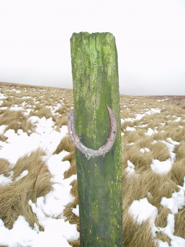 The route was the first collaboration between Cliviger Riding Club, headed up by their Chairman, Mary Towneley, and North West Water (now United Utilities) in 1974.  It is marked in brown on OS21 denoting a Concessionary route.  The route earned it name ‘Blue Horse Shoe’ from the markers placed along the route which were, literally, old horse shoes dipped in blue paint, fixed to posts along the route to lead the traveller along the drier path which runs along the lip of the clough.  Today, users are warned to take extra care as use by cycle has eroded the original route to a degree that the rider needs to be especially vigilant of the spread of the bog.  Ride as close to the Clough edge as possible as, although it may not look very attractive, it is better than riding inwards which leads you further into the mire.  The best advice is – be brave and keep moving….. look ahead and kick on.